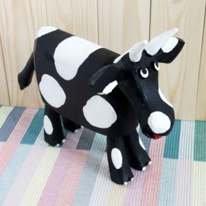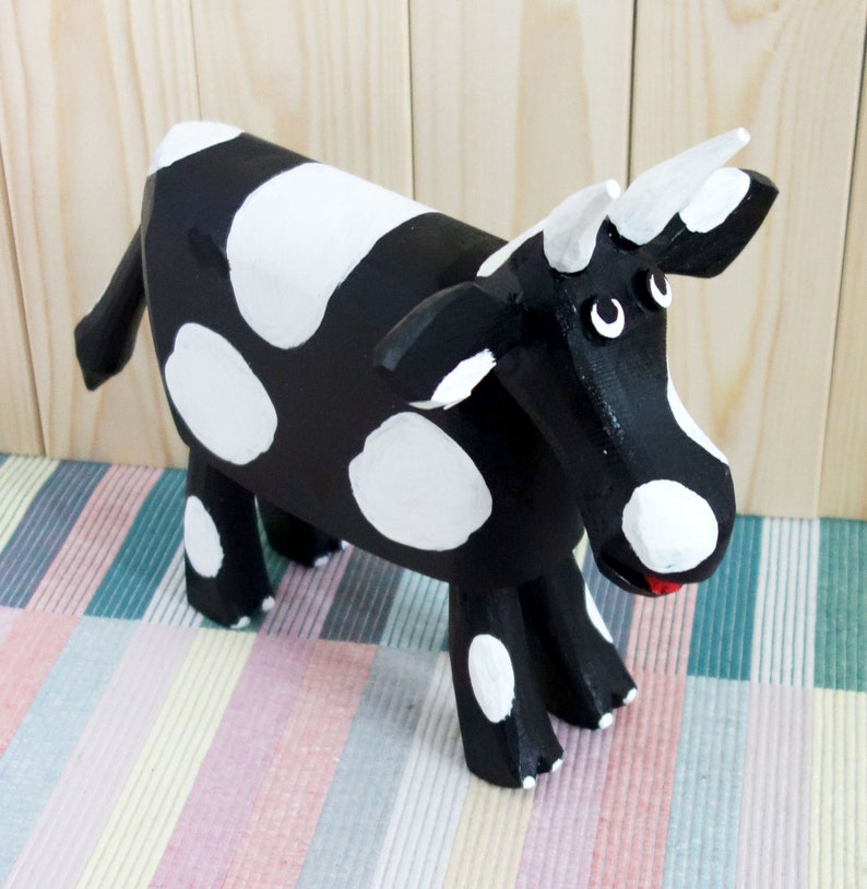 This delightful cow sculpture is hand-carved from high-quality linden wood, showcasing the natural beauty of the wood with its smooth finish and unique grain patterns. The flexible head adds a playful touch, allowing the cow to be posed in different directions. The removable head feature makes it convenient for easy transport and storage, without compromising on the charm and appeal of the sculpture.