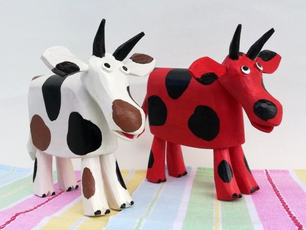 This delightful cow sculpture is hand-carved from high-quality linden wood, showcasing the natural beauty of the wood with its smooth finish and unique grain patterns. The flexible head adds a playful touch, allowing the cow to be posed in different directions. The removable head feature makes it convenient for easy transport and storage, without compromising on the charm and appeal of the sculpture.