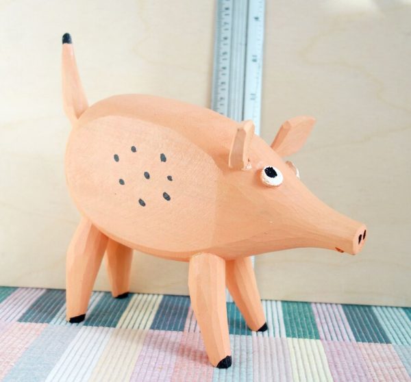 This cheerful wooden piggy figurine is carefully hand-carved and hand-painted with a light pink finish and charming black spots. The happy expression on the piggy’s face adds a whimsical touch, making it a perfect symbol of luck and joy. Whether you choose the small or big version, this piggy sculpture makes an ideal gift for those who appreciate hand-crafted art or are looking for a lucky charm to brighten up their home.